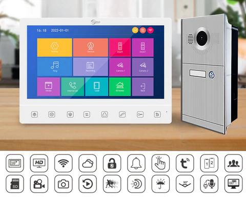 Anjielo 10-inch Tuya Smart Video Intercom 1080P Doorbell Camera - WiFi-Enabled AHD Security System for Homes/Apartments 2-Way Audio, Remote Access, Night Vision