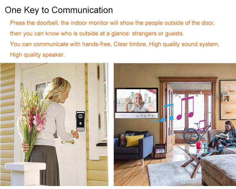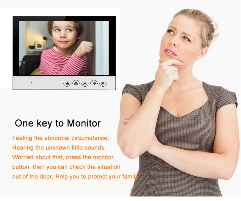 This 9 inch video door phone system is high quality and high tech product. It is with fashion and elegant design, a new product which combines with the needs of customers. The wonderful appearance is unique in the market, it can decorate your house, office, factory.