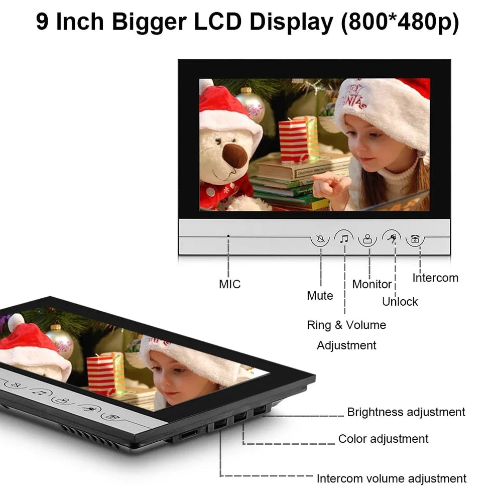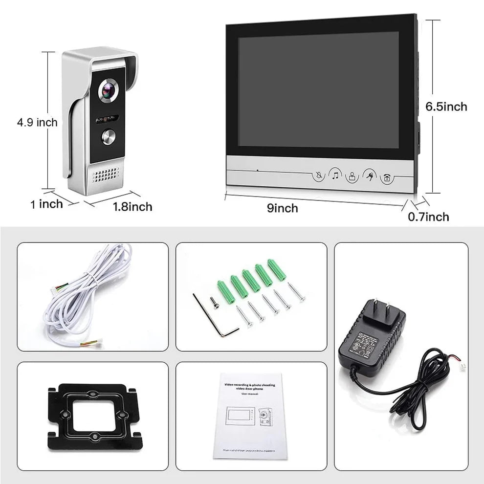 Anjielo 9-Inch Wired Video Doorbell with Visual Intercom Waterproof IR Outdoor Camera – Professional Home Security Surveillance System