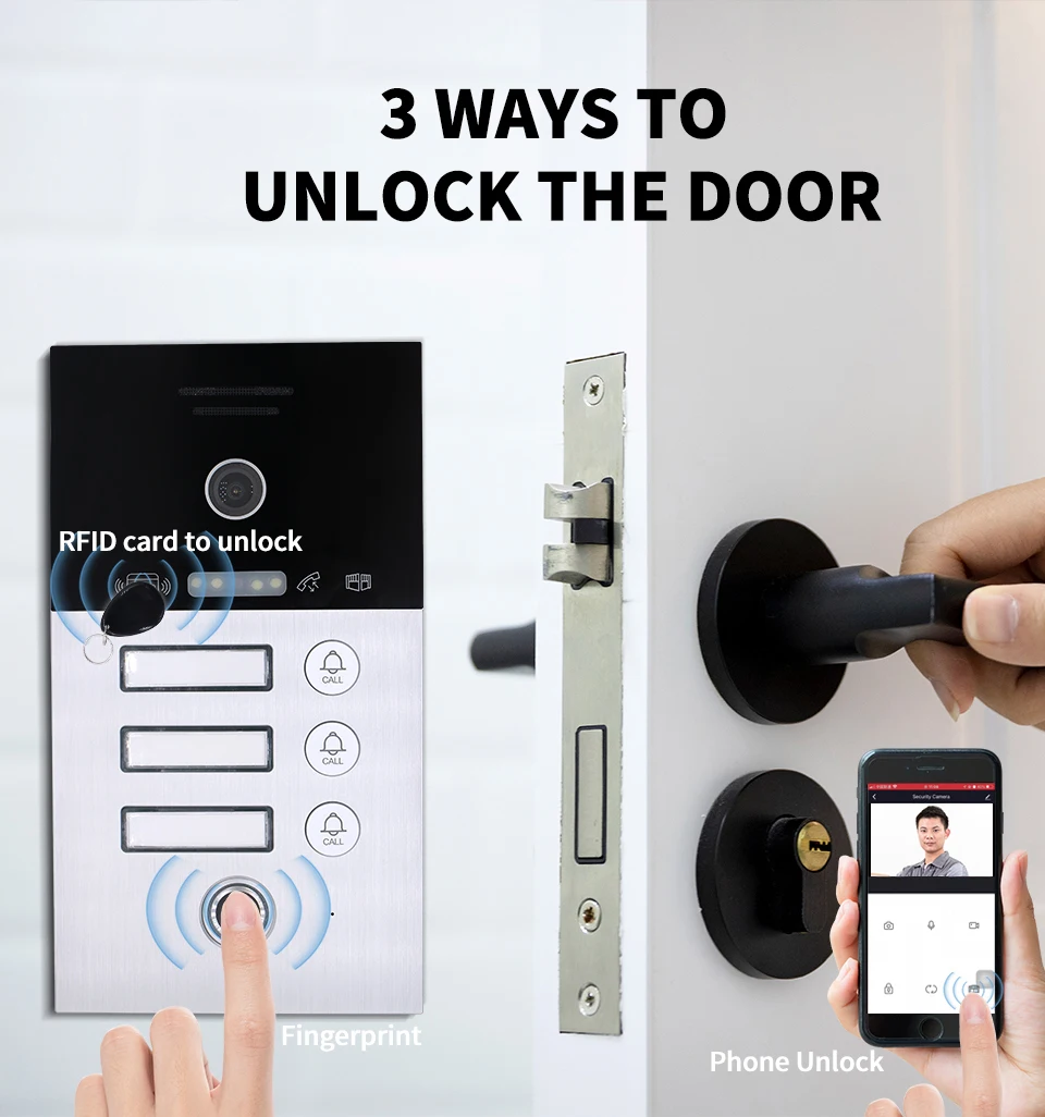 1. Fingerprint unlock. 2. Swipe to unlock. 3. Mobile app unlocking.